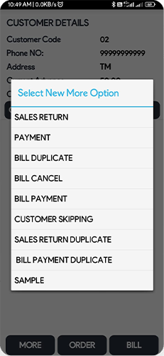 Invoice can be generated for customer from the android application. Different options such cash,cheque and credit payment options are available while generating invoice.